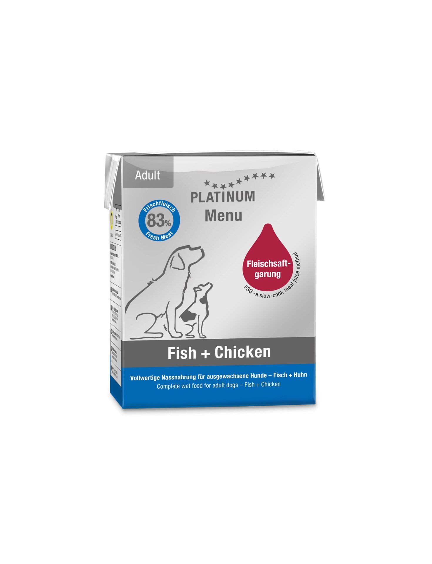 Fleischsaftgarung ir process, kurā svaiga gaļa tiek sutināta savā uzturvielām bagātajā sulā, gluži kā virtuvē. Mūsu mīkstā barība tiek pagatavota, izmantojot īso pagatavošanas tehniku, kas ir īstenojama vienīgi Tetra Recart® kartona iepakojumos, jo iepakojuma šaurā forma ļauj sasniegt nepieciešamo gaļas temperatūru daudz ātrāk, nekā ierastās konservu bundžas.